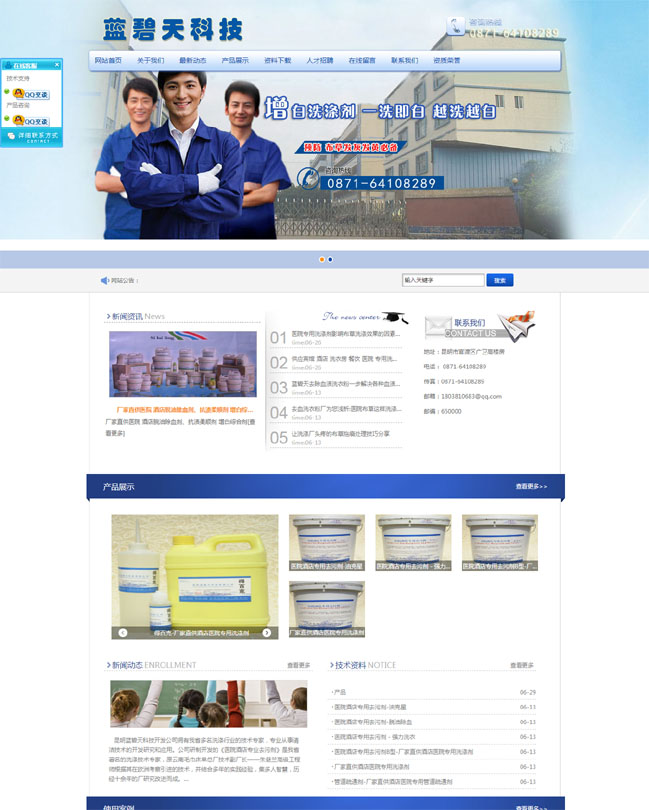 昆明藍碧天科技開發(fā)公司擁有我省多名洗滌行業(yè)的技術(shù)專家,專業(yè)從事清潔技術(shù)的開發(fā)研究和應(yīng)用。公司研制開發(fā)的《醫(yī)院酒店專業(yè)去污劑》是我省著名的洗滌技術(shù)專家,原云南毛巾床單總廠技術(shù)副廠長——朱繼蘭高級工程師根據(jù)其在歐洲考察引進的技術(shù),并結(jié)合多年的實踐經(jīng)驗,集多人智慧,歷經(jīng)十佘年的廠研究改進而成。產(chǎn)品經(jīng)《云南省產(chǎn)品質(zhì)量監(jiān)督檢驗中心》檢驗證實。